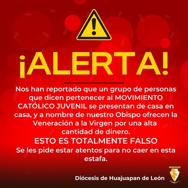 Sostuvo que el Movimiento Católico Juvenil no está reconocido dentro de la estructura diocesana, motivo por el cual, como diócesis decidieron alertar a los ciudadanos católicos para no caer en este tipo de estafas.