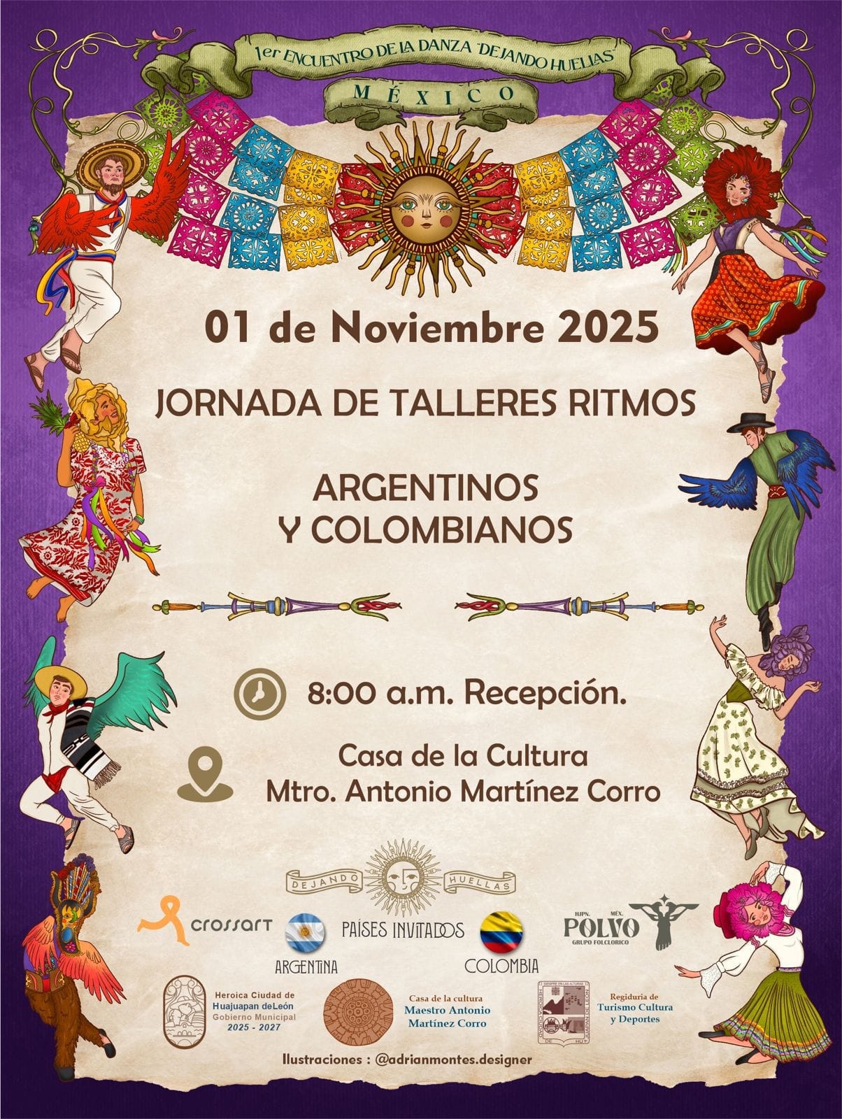 Comunicó que el primero encuentro concluye el 1 de noviembre, desde las 8 de la mañana, con una Jornada de Talleres Ritmos, argentinos y colombianos, como la cumbia, bambuco, chacarera y otros, en donde podrán acudir profesores de danza, bailarines y demás personas que quieran conocer más de estos ritmos.